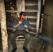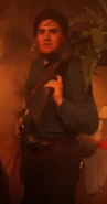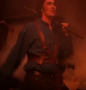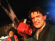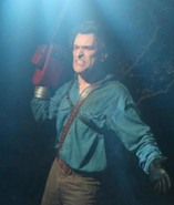 Ash Williams is the main protagonist of The Evil Dead (Franchise) and the Ash vs. Evil Dead T.V. Show. He appeared as a scareactor in the Silver Screams haunted house during Halloween Horror Nights: Ripped from the Silver Screen. He would later appear in the Ash Vs. Evil Dead (Orlando) haunted house during Halloween Horror Nights 27 and Ash Vs. Evil Dead (Hollywood) during Halloween Horror Nights 2017 (Hollywood).