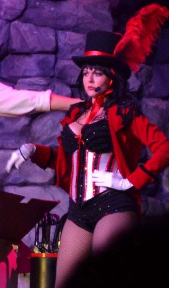 Penny is the ringmistress and the host of the 20 Penny Circus: Fully Exposed show during Halloween Horror Nights 22. She was played by Erin Nicole Cline better known for playing the role Chance The Clown, the right hand of Jack the Clown.