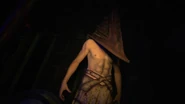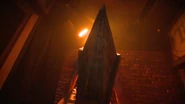 Pyramid Head is a monster (and in two cases, a duo of monsters) that debuted in Silent Hill 2 as one of the primary antagonists. Since its creation, Pyramid Head has become one of the most well-known and iconic monsters in the franchise, turning into something of a mainstream and flagship figurehead for the series. He appeared as a scareactor in Welcome to Silent Hill haunted house during Halloween Horror Nights 22.