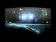 Continuing into the laundromat, guests would find a Cerberus growling as them whilst eating a human on the floor. Next, guests would walk by some hanged clothes as a Cerberus pops its head between them. Exiting out of the laundromat, guests would now find themselves in an alley where a Licker could be seen above them on their left. As they walked through the fog, guests would be startled as Jill Valentine could be seen shooting up at Nemesis, who was shooting a minigun at the guests below, sending blasts of air towards them. Another zombie would also attack guests in this scene.