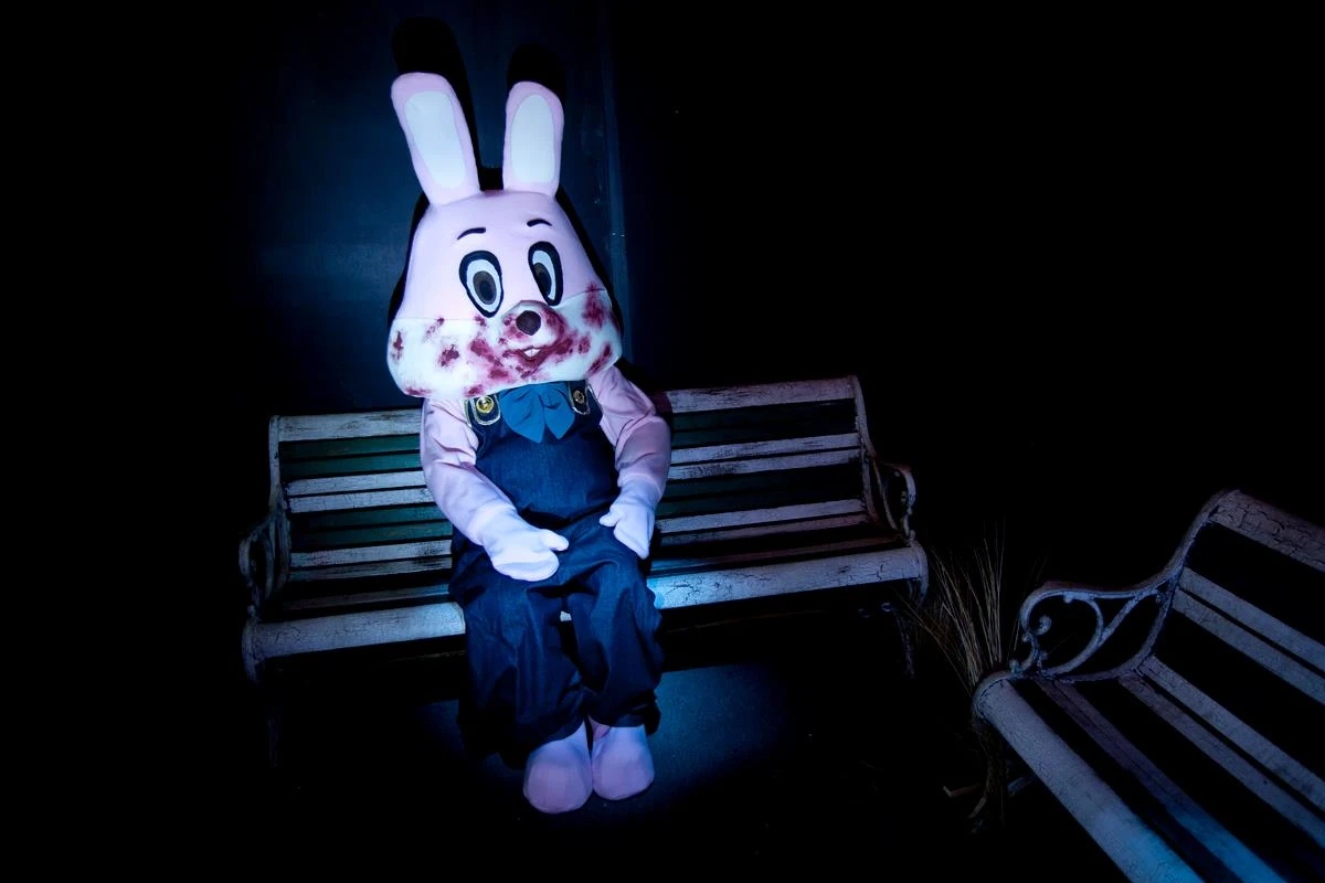 Robbie the Rabbit static figure featured in the Silent Hill haunted house during Halloween Horror Nights 22Image from InsidetheMagic