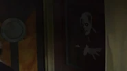 The next portion of the house had guests ducking down on the ground. Guests found themselves in the lair of The Mummy, who attacked guests on the left. Gill-Man could also be seen above guests. As guests climbed out, they entered into a lagoon-like area where they encountered Gill-Man, who attacked guests. Exiting the lagoon, guests would enter a room and would be startled by a puff of air and the loud sound of an organ playing as The Phantom of the Opera attacked them from the left.