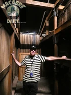 Guests then entered the Paymaster's office, where Larry Talbot was sitting in mid-transformation screaming in agony as the window shined a pale full moon as guests exit out of the room.